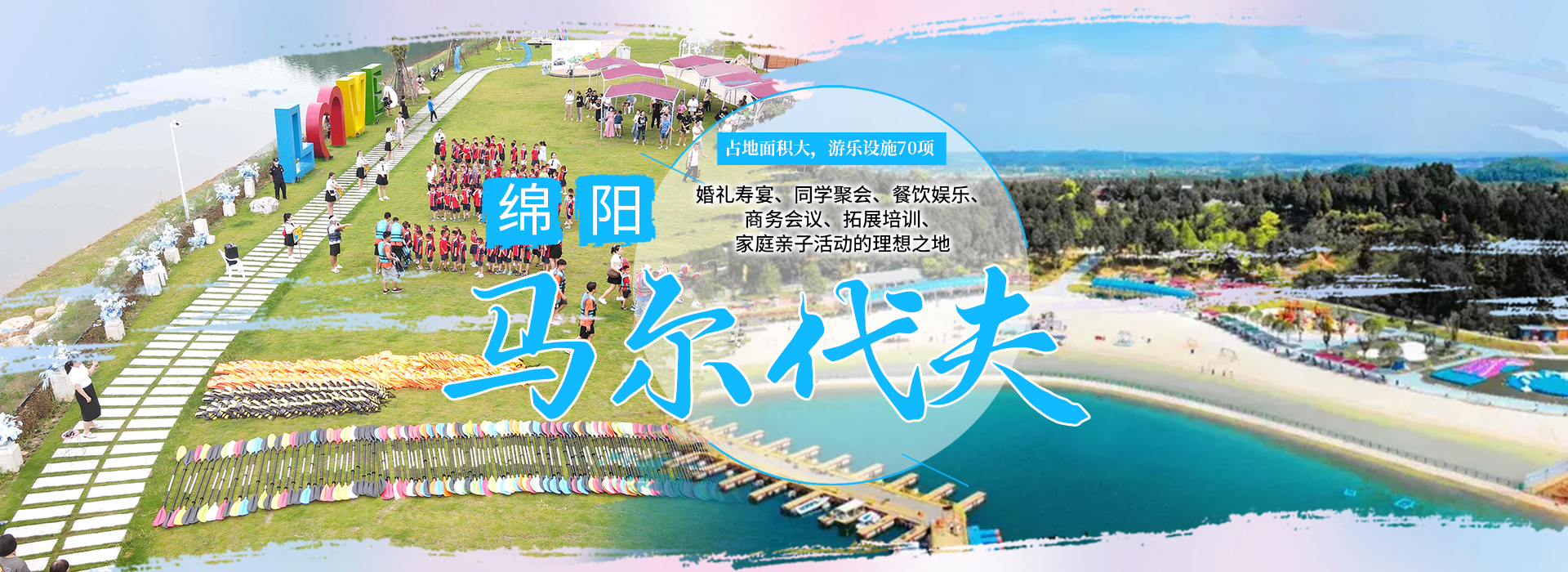 綿陽嘉成文化旅游有限公司是一家旅游開發(fā)公司,成立于2019年。 親水灣沙灘樂園項目由綿陽嘉成文化旅游有限公司開發(fā)運(yùn)營,位于國家級水利風(fēng)景區(qū)——綿陽市仙海水利風(fēng)景區(qū),距綿陽市區(qū)15公里,車程約半個小時,是依托沉抗水庫建設(shè)的仙海風(fēng)景區(qū)重點(diǎn)旅游項目。進(jìn)入仙海風(fēng)景區(qū)上坡向左進(jìn)入環(huán)湖路前行1000米。項目總占地220畝,其中核心沙灘樂園占地100畝,現(xiàn)建成沙灘休閑、淺灘嬉水、水上運(yùn)動,親子蹦蹦云、網(wǎng)紅多人秋千、人力過山車、水幕秋千、團(tuán)隊拓展等項目十余個,還開設(shè)有特色中餐、仙海火鍋魚,自助燒烤等飲食項目。 近觀青山綠水,遠(yuǎn)眺碧波蕩漾,清晨朝霞映翠、傍晚水天一色。親水灣沙灘主題樂園有可容納200人的沙灘會議室和30人的小型會議室;棋牌室16間; 商務(wù)KTV;餐飲中心可同時容納300人用餐;篝火晚會場地等,是婚禮壽宴、同學(xué)聚會、餐飲娛樂、商務(wù)會議、拓展培訓(xùn)、家庭親子活動的首選之地。